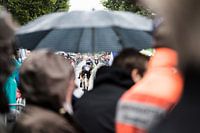 De tijdrit in Dusseldorf was nat. Voeckler probeer toch nog een beetje droog te blijven