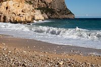 Schuimend zeewater, golven en een dromerig strand aan de Middellandse Zeekust. Aan de voet van de berg Cumbre des Sol ligt een baai omringd door een imposante rotsachtige achtergrond. Cala Moraig is zonder twijfel een van mijn favoriete baaien aan de noordelijke Costa Blanca, omdat op deze dromerige plek zeewater en rotsen elkaar ontmoeten die in de loop van vele duizenden jaren door de kracht van het water zijn gevormd. Als ik naar de rotsen en golven kijk, denk ik aan tijd en verandering in de natuur. Naar mijn mening staat het stromende water voor natuurlijke schoonheid die wordt gekenmerkt door voortdurende beweging en verandering.