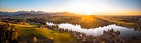 Zonsondergang in de Allgäu aan de Schwaltenweiher vijver met de Oost Allgäuer Alpen op de achtergrond