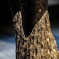 Sculptuur van ruw marmer bekleed met textiel, doordat de stof opengewerkt is, geeft dit een mooie lichtval.