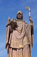 Sculptuur van de stadsoprichter Aartsbisschop St. Ansgar, Comfortbrug, Hamburg, Duitsland van Torsten Krüger