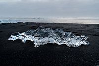 Restanten gletsjerijs spoelen aan op Diamond beach, IJsland..