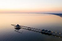 Luchtfoto van de Heringsdorf-pier op het eiland Usedom bij zonsopgang, Mecklenburg-Vorpommern, Duitsland
