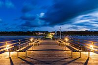 Seabridge in de badplaats Prerow op het schiereiland Fischland-Darß-Zingst 's nachts.