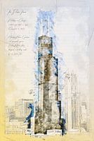 Architectuurschets uit een serie tekeningen van de mooiste en beroemdste gebouwen ter wereld. Gemaakt met potlood en aquarel op papier.