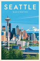 Koop dit digital art kunstwerk Seattle, Washington Vintage Reisposter van Poster Art Shop als reproductie op canvas, aluminium dibond, (ingelijste) fotoprint, behang en ArtFrame, op maat geprint in Fine-Art kwaliteit.
