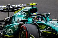 Sebastian Vettel, nummer 5, rijdt in een Formule 1 auto van het merk Aston Martin rond op het circuit van Spa Francorchamps tijdens de Grote Prijs van België 2022.
