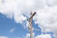 Wood Cross with crucified Christ in Seceda Dolomites
