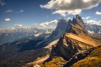 Bewonder de adembenemende grootsheid van de Seceda-berg in het hart van de Italiaanse Dolomieten. Deze foto legt de essentie van de pure schoonheid van de natuur vast en nodigt u uit om uzelf onder te dompelen in de serene rust van dit majestueuze landschap.