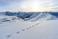 kleine stappen naar de Seealpsee op de Nebelhorn. altijd met het uitzicht op de Allgäuer hoge alpen