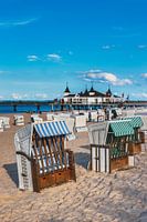 Die Seebrücke Ahlbeck ist eine Seebrücke an der Ostsee. Die Brücke ist 280 Meter lang. Sie wurde 1882 errichtet und mehrfach umgebaut, Ahlbeck, Insel Usedom, Landkreis Vorpommern-Greifswald, Mecklenburg-Vorpommern, Deutschland, Europa