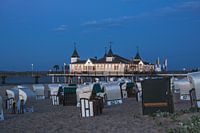 Die Seebrücke Ahlbeck ist eine Seebrücke an der Ostsee. Die Brücke ist 280 Meter lang. Sie wurde 1882 errichtet und mehrfach umgebaut, Ahlbeck, Insel Usedom, Landkreis Vorpommern-Greifswald, Mecklenburg-Vorpommern, Deutschland, Europa