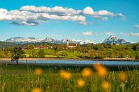 Seeg met uitzicht op de Allgäuer Alpen, Säuling en het meer