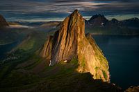 Segla and Fjordgard and Fjordgard village in sunset, Senja, Norway