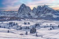 Seiser Alm in Zuid Tirol op een winter ochtend.