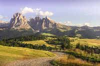 Alpe di Siusi of Seiser Alm, Dolomieten Alpen Sassolungo en Sassopiatto bergen en pad, Trentino Alto Adige Sud Tirol, Italië, Europa