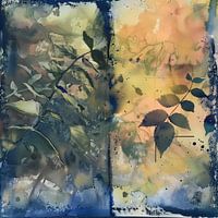 Seizoensbladeren achtergrond, digitale aquarel en collage