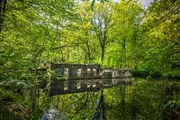Het idyllische plekje bij de ruine Seldensate Middelrode bij Heeswijk-Dinther in de buurt van Den Bosch. Prachtig groen, en reflecterend in de slotgracht.