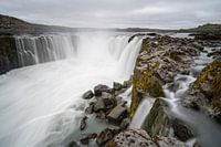 Iets verder stroomopwaarts vanaf Dettifoss ligt de Selfoss. Deze waterval vond ik persoonlijk nog mooier om te zien dan de Dettifoss omdat het water hier over een V-vormige kloof naar beneden stort. Er een mooie foto van maken betekende wel dicht naar de rand te kruipen, maar dat had ik er graag voor over.