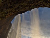 Koop de foto Seljalandsfoss - onder de waterval van Timon Schneider als print op canvas, aluminium dibond, (ingelijste) fotoprint, behang en ArtFrame. Voor jou op maat geprint in Fine-Art kwaliteit.
