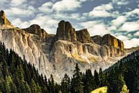 Zicht vanuit Canazei op het Sella massief. Een gebied waar alles samenkomt natuurschoon wandel en fietssport. Skiën auto en motorrijden in de bochtige omgeving en genieten van de wissellende uitzichten