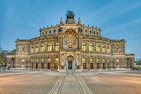 Opname van de Semper Opera in Dresden op het blauwe uur.