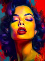 Een digital artwork portret van een prachtige sensuele senorita met rode lipstick in een kleurrijke pop art style.