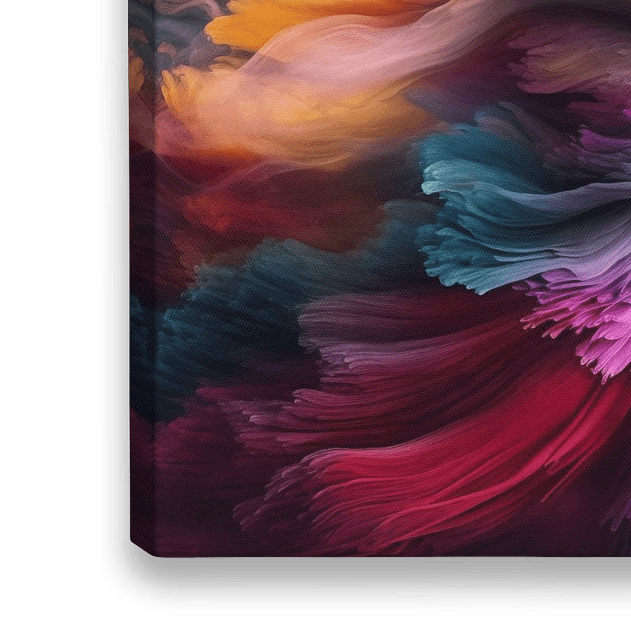 Kleurrijk expressief portret van een vrouw met een aura van rookpluimen in felle kleuren.