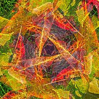 Dit kleurrijke geometrische kunstwerk is gebaseerd op een foto van bladeren van de amberboom op een grasveld. De vijfpuntige bladeren van die boom krijgen in de herfst allerlei bonte kleuren: geel, oranje, rood en zelf paars. Samen met het groen van het gras levert dat een bijna psychedelisch schouwspel op.