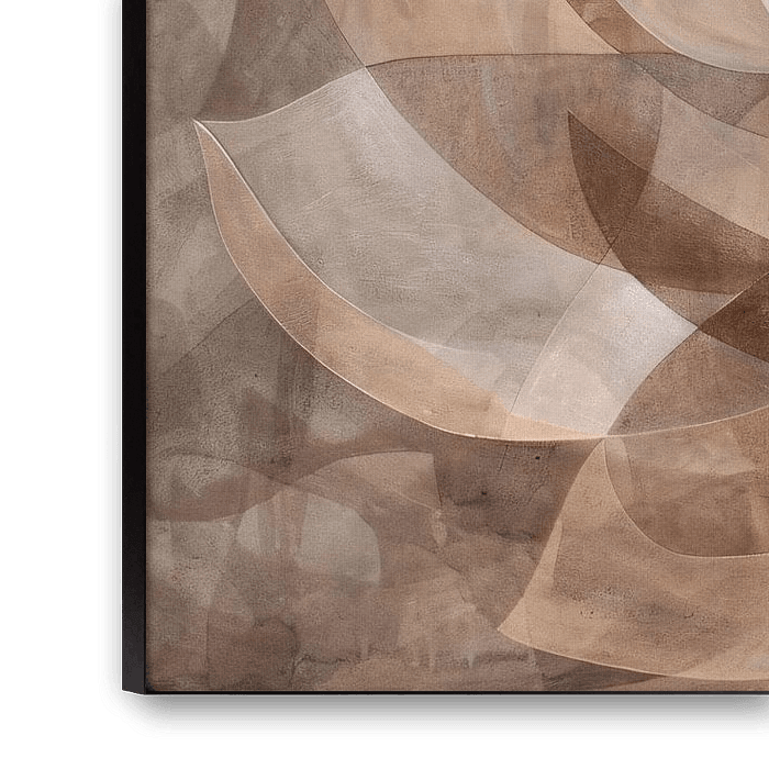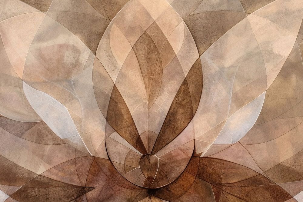 Dit abstracte ontwerp, met zijn zachte overgangen van licht naar donker, creëert een harmonieuze sfeer die uitnodigt tot contemplatie. De subtiele tonen van beige tot bruin vormen samen een lotusbloem die zowel rust als vernieuwing symboliseert. Het sepia kleurenpalet voegt een vleugje nostalgie toe en maakt dit stuk veelzijdig voor diverse interieurstijlen. De gelaagdheid van de bloembladen geeft een dynamische diepte die je blijft boeien. Perfect voor de moderne woonkamer of een stilistisch kantoor, dit kunstwerk belooft een centraal punt van interesse te zijn en is een gespreksstarter die subtiliteit en elegantie uitstraalt.