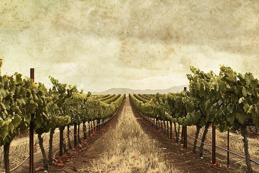 Ontdek de rustieke charme van een klassieke wijngaard, gevangen in sepia tonen die een gevoel van nostalgie en tijdloze schoonheid oproepen. Deze afbeelding, perfect voor zowel moderne als traditionele interieurs, geeft de kijker een blik op rijen rijpende druivenranken, strategisch geplant op vruchtbare gronden. De droge, strokleurige grassen aan de voet van de wijnstokken en de zachte glooiingen op de achtergrond suggereren de aanwezigheid van een verhalend landschap, vol met de geheimen van oude oogsten. Deze sfeervolle afbeelding voert je mee naar een wereld waar de tijd langzamer lijkt te gaan en de waardering voor vakmanschap en natuur samenkomt.