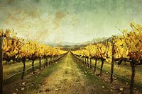 Sepia herfstwijngaard met heuvels op de achtergrond van Art & Soul Creations