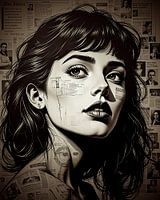 Uiteindelijk is het hele beeld ingekleurd in een warme sepiatint, die niet alleen een nostalgische stemming creëert, maar ook de verschillende elementen met elkaar verbindt. Het sepia-effect geeft de compositie een tijdloze kwaliteit en benadrukt de emotionele nuances die verborgen zitten in de krantenknipsels en fotofragmenten. Door dit subtiele kleurgebruik lijkt het beeld een levende herinnering en wordt de kijker aangemoedigd om de verhalen en betekenissen achter de gebruikte materialen te verkennen. In deze harmonieuze samensmelting van media en technieken wordt kunst een krachtig verhaal over identiteit en expressie.