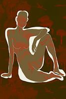 Grafische tekening in rood en bruin.