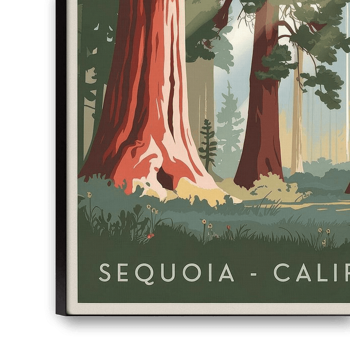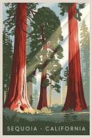 Majestueuze sequoia's rijzen trots naar de hemel, terwijl zachte lichtstralen door de boomstammen flitsen. De rustige sfeer en het aardse kleurenspel brengen de natuur bij je thuis. Dit kunstwerk is ideaal voor de woonkamer, geeft elke kamer een ontspannen maar indrukwekkend tintje en nodigt je uit om te dromen.