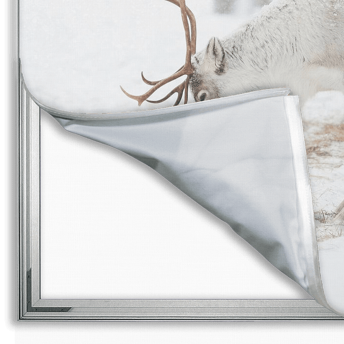Ontdek de verstilde schoonheid van een winterbos, waar tere sneeuwvlokjes dansen en de tijd lijkt stil te staan. Aanschouw het majestueuze rendier met zijn indrukwekkende gewei dat boven het besneeuwde landschap uitsteekt - een symbool van kracht en gratie te midden van de koude pracht van de natuur. Breng de magie van de winter in je huis met deze prachtige kunstdruk, perfect om een vleugje elegantie en rust toe te voegen aan elke ruimte.