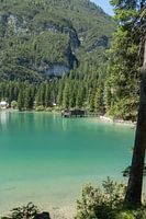 Meer in Italië. Prager Wildsee. Gefotografeerd tijdens een warme, zonnige dag vanuit de schaduw