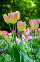 Deze zachte mooie kleuren van de bloembollen die deze geweldige tweekleurige tulpen mooi in beeld, brengen een glimlach op je gezicht. Bokeh op de achtergrond maakt dit een sereen en zacht plaatje.