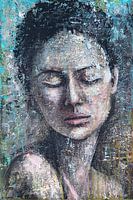 Hedendaagse kunst met een grote uitstraling. Kleuren en structuur geven kracht en zachtheid tegelijk aan dit schilderij. Vrouwelijk portret is een tijdloos een altijd zeer gewaardeerd stijl. De kleuren passen bij elke interieur.