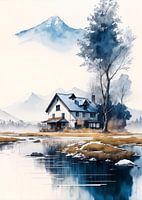 Dit aquarel schilderij van een huis aan het meer vangt de tijdloze allure van de natuur's omhelzing, nodigt kijkers uit om te ontsnappen aan de drukte van het dagelijks leven en troost te vinden in de harmonie van deze idyllische omgeving. Het dient als een zachte herinnering aan de schoonheid die schuilt in de eenvoud van de…