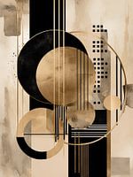 Stap in de wondere wereld van abstracte cirkels en geometrische prints met deze levendige decoratie genaamd. Dit kunstwerk, geïnspireerd door donker zwart en rustgevend beige, brengt een speelse combinatie van kleuren tot leven.