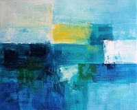 Details: abstract schilderij, moderne kunst, kleurendynamiek, blauw, groen, geel, oranje