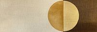 Serene Harmony of Earth Tones - Dit abstracte schilderij toont een groot centraal geplaatst cirkelvormig element, gehalveerd in beige en bruingouden tinten, tegen een achtergrond die speelt met textuur en gradaties van beige en donkerbruin voor een rustgevend maar krachtig visueel effect.