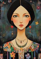 Over ‘Serene Jonge Vrouw | Vrouw met Hart Oorbellen’ van Blikvanger Schilderijen