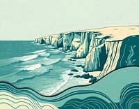 Dompel jezelf onder in de rust van de zee met deze minimalistische afbeelding van een ruige kustlijn. Het zachte kleurenpalet en de vloeiende lijnen roepen een gevoel van rust en kalmte op. Perfect om een vleugje kustsereniteit toe te voegen aan elke ruimte.