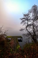Mistige omstandigheden met nevel op het water maken van deze foto een sfeervolle natuurfoto in natuurgebied de Leemputten in Noord-Brabant in de buurt van Biezenmortel. De opkomende zon probeert de mist te verdrijven en geeft kleur aan de lucht. Een kalm en sfeervol beeld.