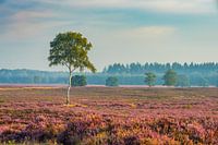 Het gouden uurtje op heideveld Renderklippen in de provincie Gelderland