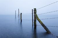 Prikkeldraadafscheiding en een mistig sfeertje aan de Kraaijenbergse Plassen bij Cuijk.