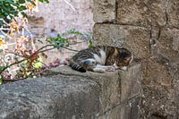 De straatkatten van Rhodos zijn meer dan zwerfkatten: ze maken deel uit van het dagelijkse leven op het eiland en worden liefdevol verzorgd door zowel de lokale bevolking als bezoekers. Met hun ontspannen, vertrouwende aard en het mediterrane landschap op de achtergrond vormen ze een uniek fotomotief. Deze foto vangt de speciale sfeer van het eiland en brengt een stukje Griekse sereniteit in je huis. Het is perfect voor kattenliefhebbers, Griekenland-liefhebbers en iedereen die de mediterrane levensstijl waardeert.