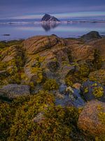 Het gouden uurtje begint langzaam te gloeien op rotsen bij Sundklakkstaumen